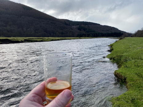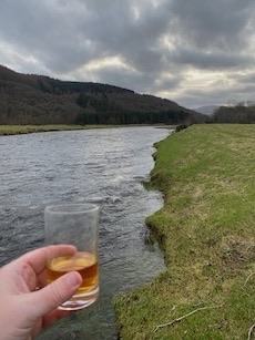 Opening Day 2025.1st February 2025 After enjoying a nice morning in Kelso for the official RTC opening ceremony and Tweed Fly Fair, Gary and myself made our way up to Caberston to offer our toast and make a ceremonial cast. To mark my 15th season and Gary's first, a nice bottle from my cabinet was opened and offered to the river from Gary's quaich.