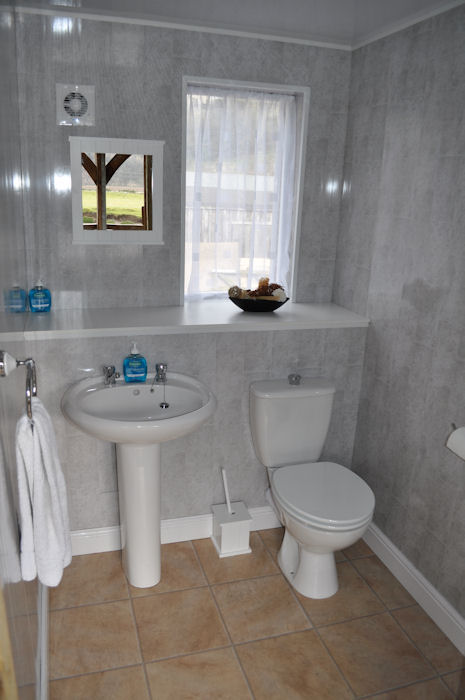 30th March 2011 The refurbishment of the toilet is now complete. After a very cold winter at Upper Caberston,( -20 during some nights) leaving our pipework with more holes than a cheese grater, I decided it was time for a full overhaul. We have removed all the copper pipework and replaced with 'non burst' plastic pipes, removed the over sink water heaters and have installed an instantaneous water heater to supply both the toilet and kitchen areas. We have installed a new toilet and hand basin, cladded the walls and ceiling and replaced the floor covering. As you will see from the picture below the end result is excellent.