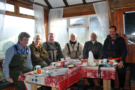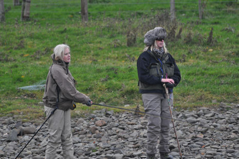 7th November 2011 The river is sitting at 11" this morning and we have a very hard frost. We have a new team of rods this morning and they are all ready set up and are raring to go. |