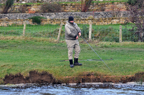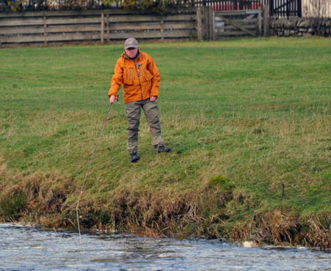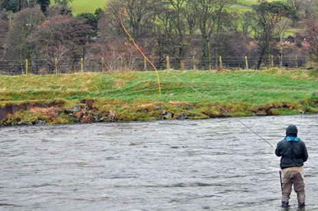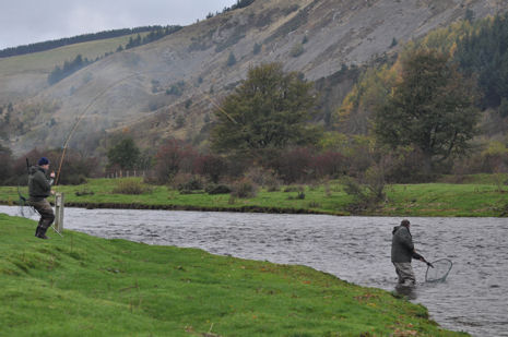 20th November 2012 A MIXED BAG!John E had a good session today, a 5 lbs Grilse, 2 Sea-Trout of 3 and 4 lbs and a Grayling of 3 lbs, all from The Bridge Pool. We also lost a couple of good fish, one of which was hooked in The Bishop's, ran down through The Clure, through the Gooselandale, crossed the weir in to The Cauld Hole and threw the hook! |