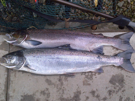 22nd November 2011 TWO TODAY AND A KELT!!!After catching his first ever Salmon yesterday, William E scored again today catching a 6lbs Grilse from the Bridge Pool. John E (Williams father) caught a 16lbs Salmon from the Cauld Hole,then later he caught a 13lbs Kelt, also from the Cauld Hole. Steve says the Kelt was in good condition and was released hopefully to return to the sea and pay us another visit in the future. |