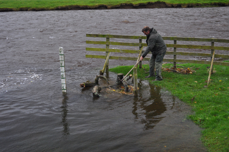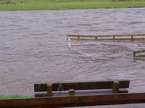 30th November 2011 WASHED OFF!We were unable to fish the final day of the season after the flood. The river was to dirty and there was debris everywhere. The water was over 1' deep in the carpark. You can see from the pictures below the debris and where the the branch is wedged in the fence how high the water came up. Just spare a thought for poor Steve who now has to start clearing the debris. I will be posting a full end of season report in December. |