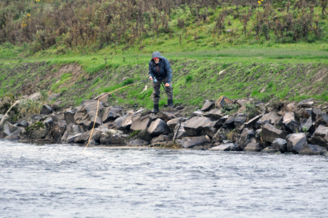 5th November 2011 13 TODAY, YES YOU READ IT RIGHT!We had an excellent day today, with the river dropping to a height that holds up the fish added with the much cooler temperatures, a good days fishing was on the cards. Ed (the dig) M leading the way again with 8 Salmon/Grilse, a 14lb,12lb and a 5lber from the Clure, a 5lber from the Gooselandale,another 5lber from the Cauld Hole, then a 6lb,5lb and a 51/2lber from the Bridge Pool. Michael R had 3 Salmon, two 8lbers and a 10lber from the Bridge Pool. And last but not least, Steve once again handed the rod from Robin W landed two Salmon, a 10lber and a 8lber from the Bridge Pool. Steve reports that every pool must have 50-60 fish in them, a lot of large hens and a lot of fresh grilse that have arrived later than normal. As yesterday the tactics were very fast sinking lines and flies with a hint of blue in the dressing. Roll on Monday! |