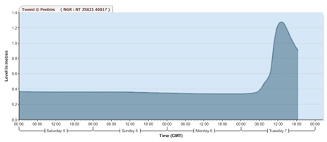 12th November 2011 The river level this morning is 1'6" and rising after heavy rain last, the air temperature is already 10.5 degrees. Whilst driving home from the beat last night the air temperature never dropped below 9 degrees even when crossing the highest points on the A68. Normally I would expect close to freezing at the least. It's also worth noting that only 46 fish were caught on the Tweed system yesterday. |