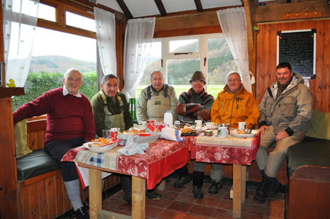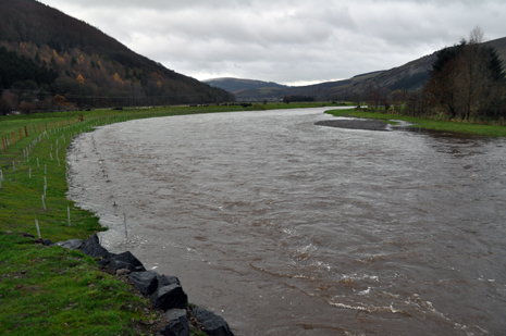 19th November 2012 ONE TODAY.I went up to the beat today to meet our rods, I already knew the river was rising after speaking to Steve in the morning and my heart began to sink on the journey up as all the rivers and burns I crossed where dirty, so I was not expecting good news when I arrived on the beat at lunch time. When I arrived the river was 3' and rising and beginning to colour, but it was welcome relief to hear the news as our rods returned to the Bothy for lunch. Terry C had a 5lbs Grilse from The Clure and John E, with us for the second occasion, was well practised in involuntary catch and release, he managed to lose 3 Salmon and a Sea-Trout! After lunch the river continued to rise and became even more coloured, the team stuck at it, nothing for them in the afternoon. At close of play the river was 4'6" and still rising. |