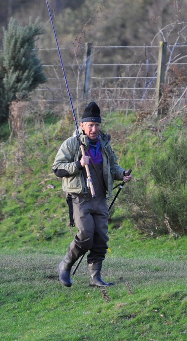 Our sixth fish was caught by Steve, who again was handed the rod from Robin W and proceeded to catch another 12lber from the Bridge Pool. The winning tactics today were a very fast sinking line and a conehead tube with red, black and a touch of blue in the dressing. |
